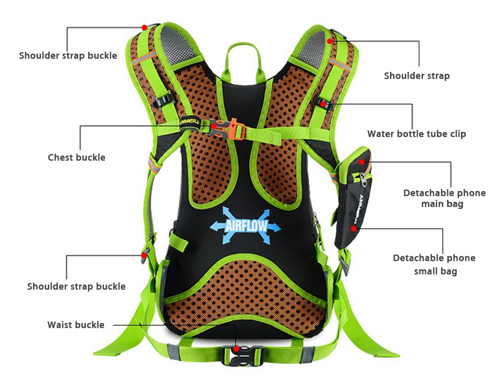 - Adjustable shoulder strap, chest strap and waist strap to fit your needs