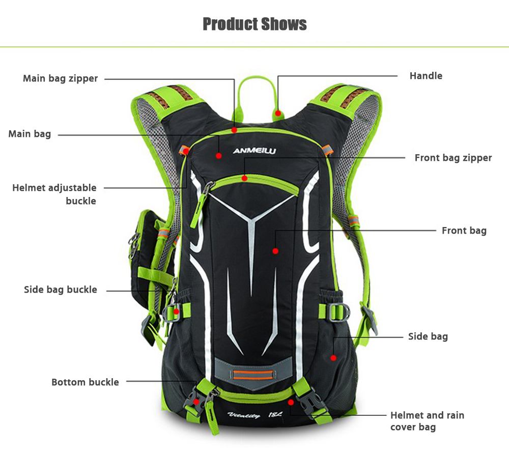 - 18L cycling backpack, made of ultralight water-resistant and tear-resistant nylon fabric